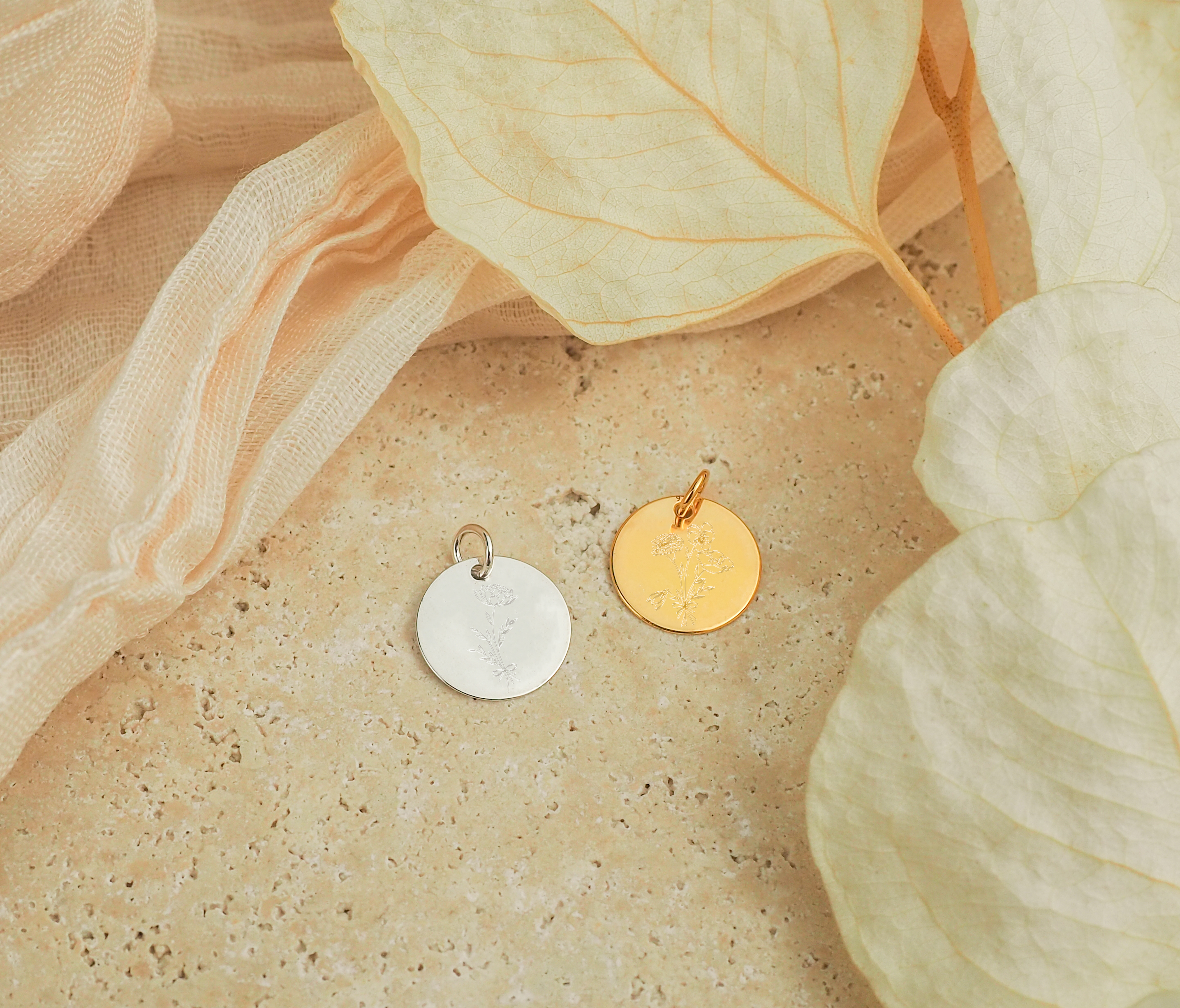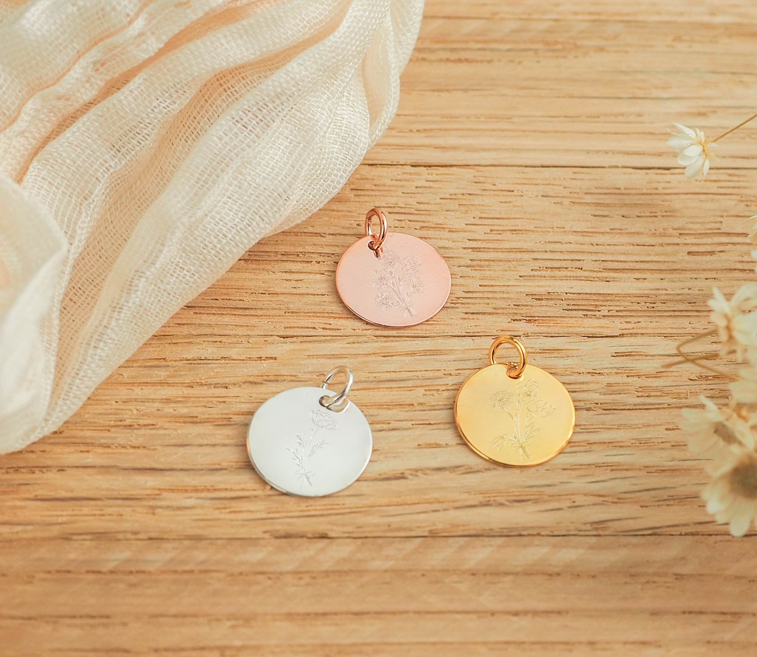 Gravur Anhänger 925er Silber personalisiert Geburtsblumenstrauß