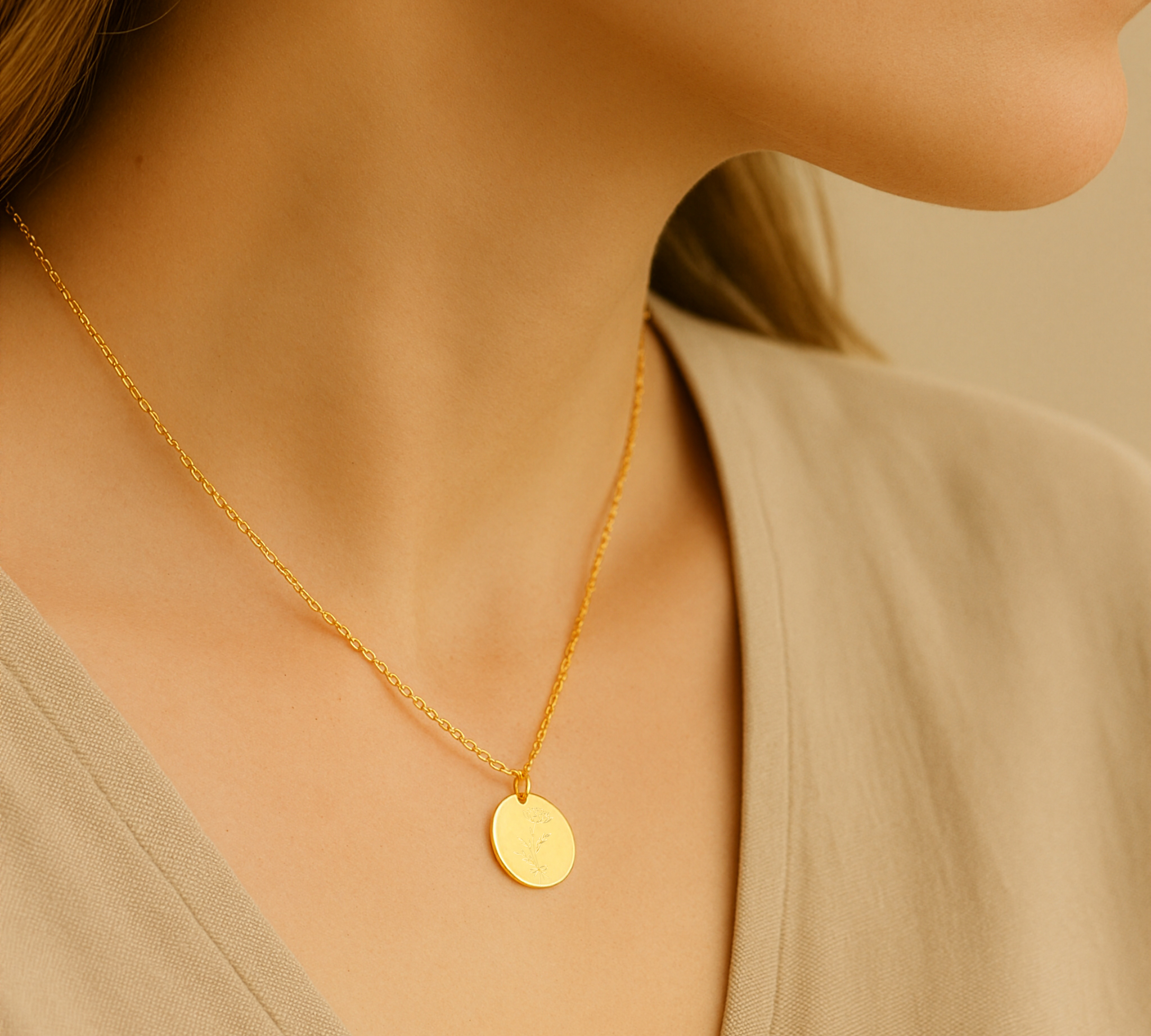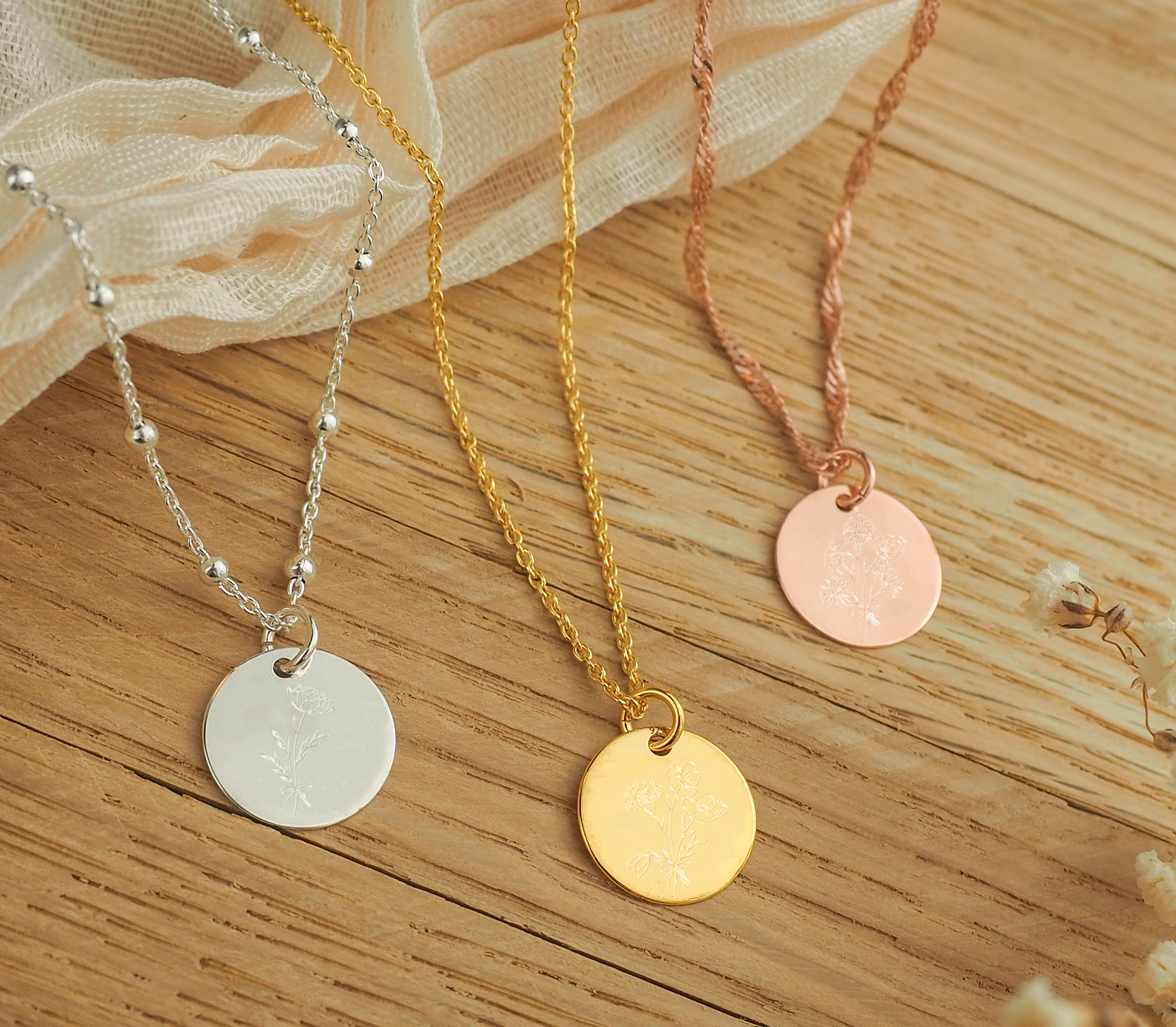 Gravur Kette personalisierbar 925er Silber Geburtsblumenstrauß runder Anhänger