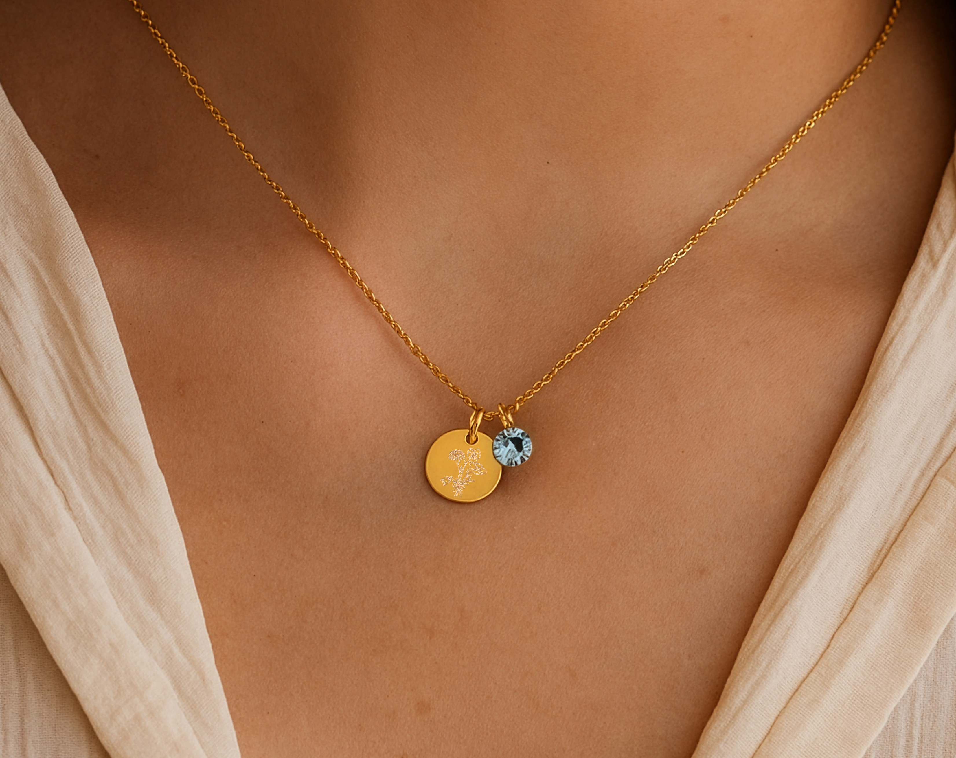 Gravur Kette personalisierbar 925er Silber Geburtsblumenstrauß Geburtsstein runder Anhänger