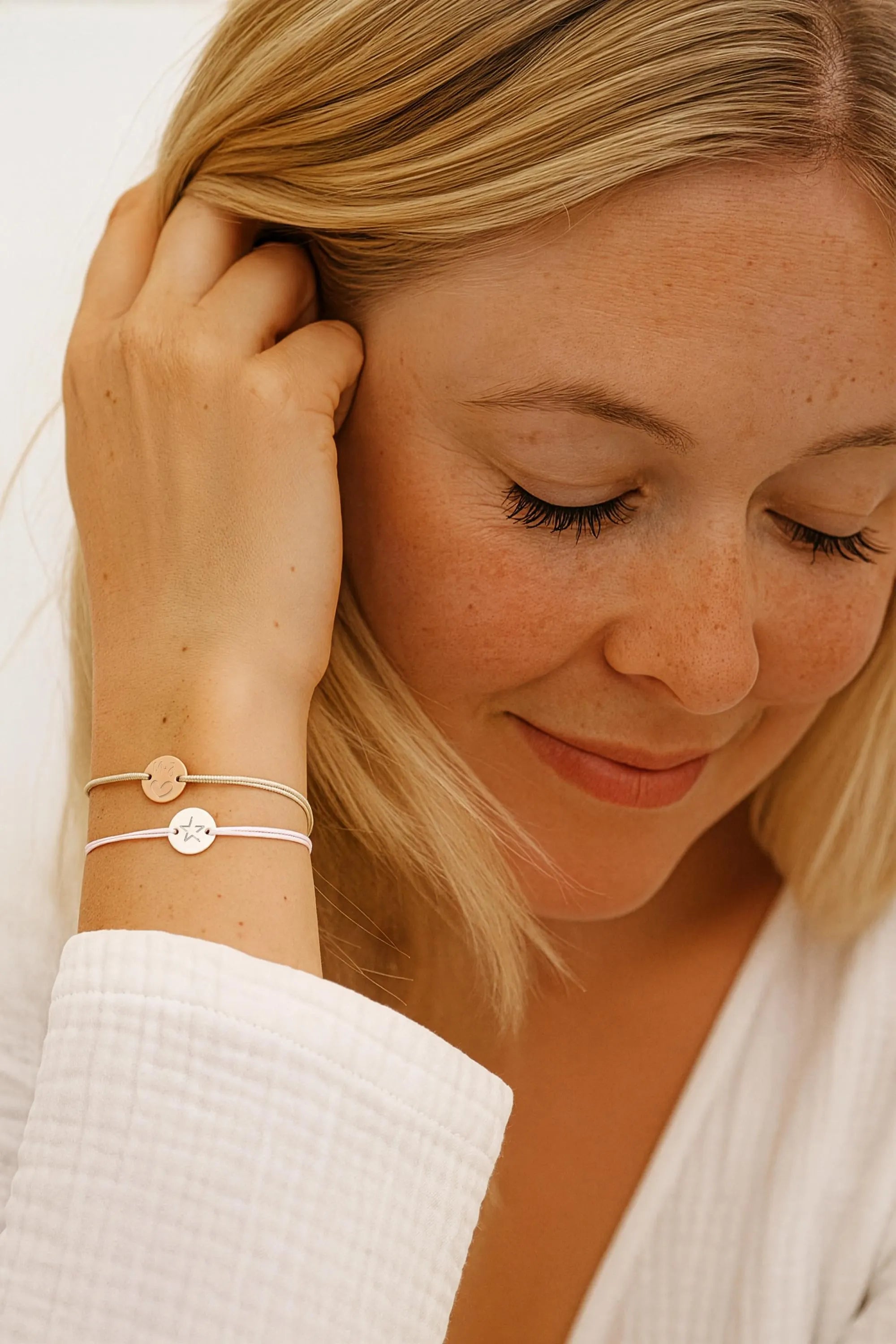 Bitte lege deinen Schmuck vor dem Sport, körperlicher Arbeit und dem Schlafen gehen ab, um eventuelle Beschädigungen durch mechanische Einwirkungen (wie z.B. Schläge, Stöße, Hängenbleiben, Verhaken) zu vermeiden.