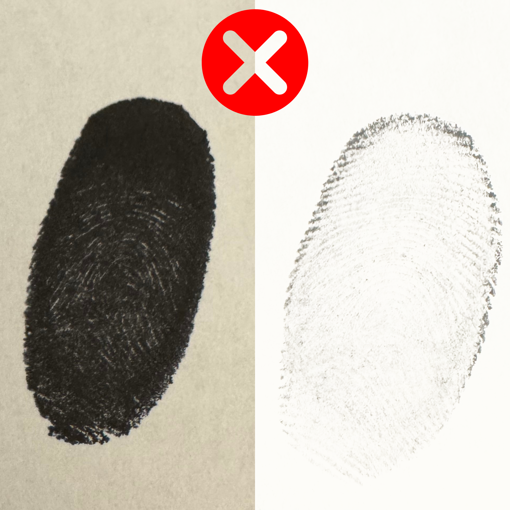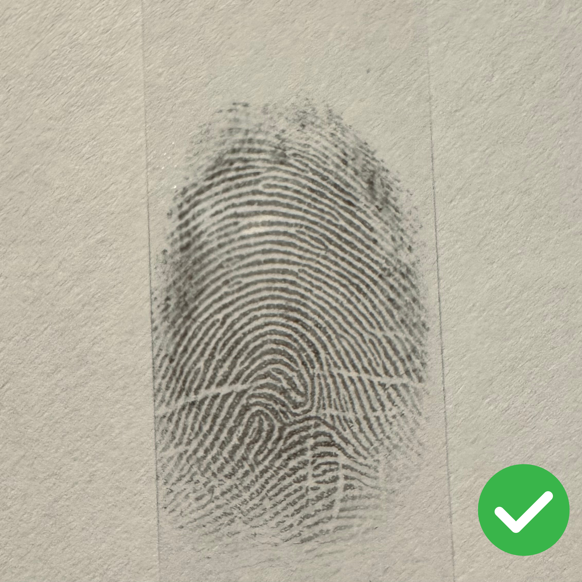 Ein idealer Abdruck hat klare, durchgehende Linien mit gutem Kontrast. Fleckige, zu helle, zu dunkle oder unscharfe Abdrücke sind nicht geeignet.