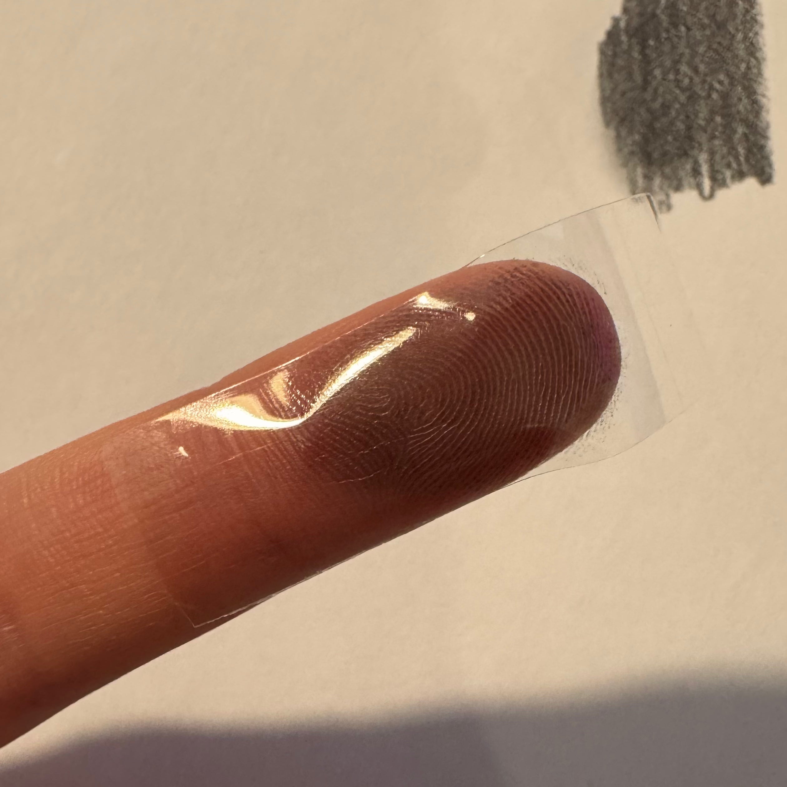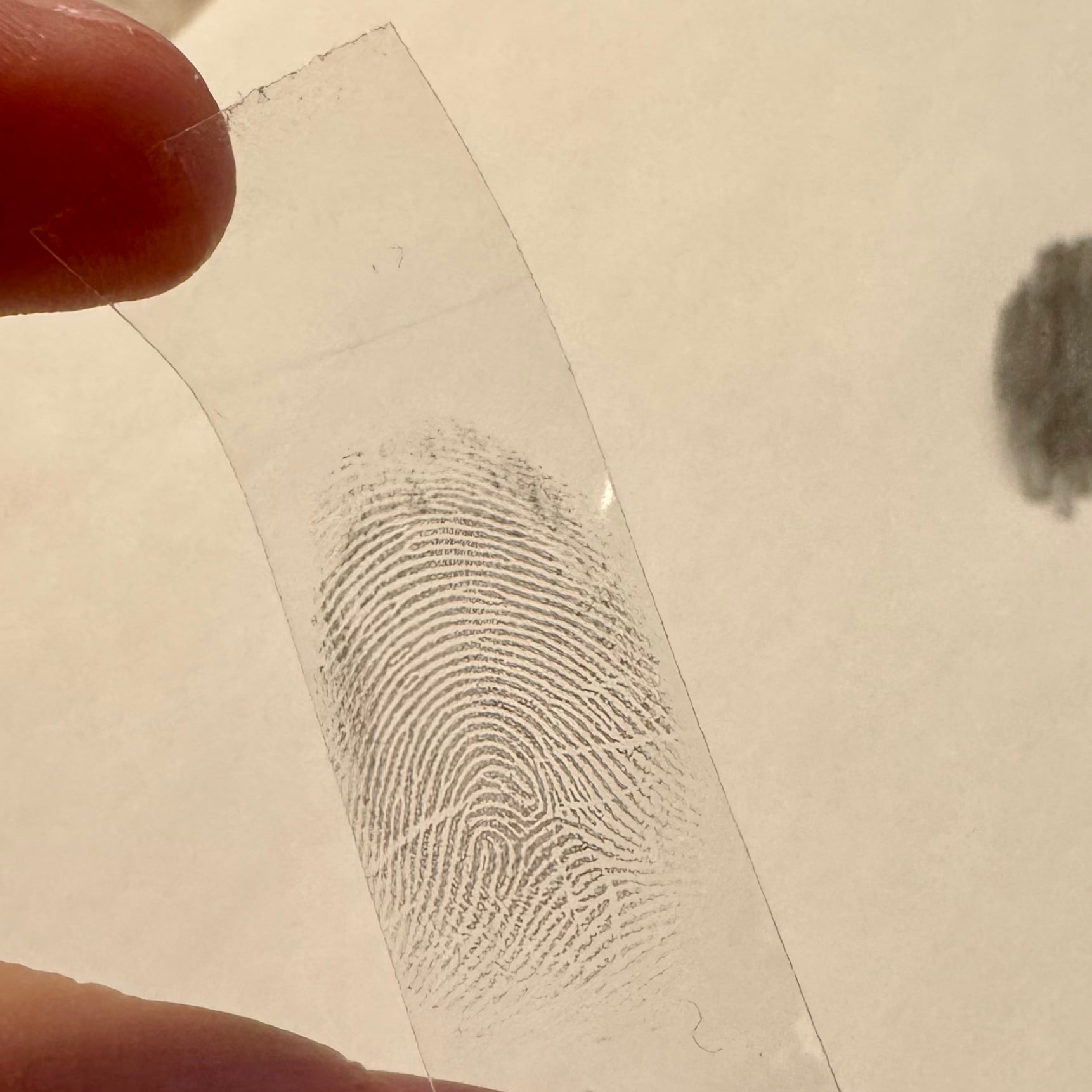Zieh das Klebeband vorsichtig vom Finger und stelle sicher, dass der Fingerabdruck gut erkennbar ist.
