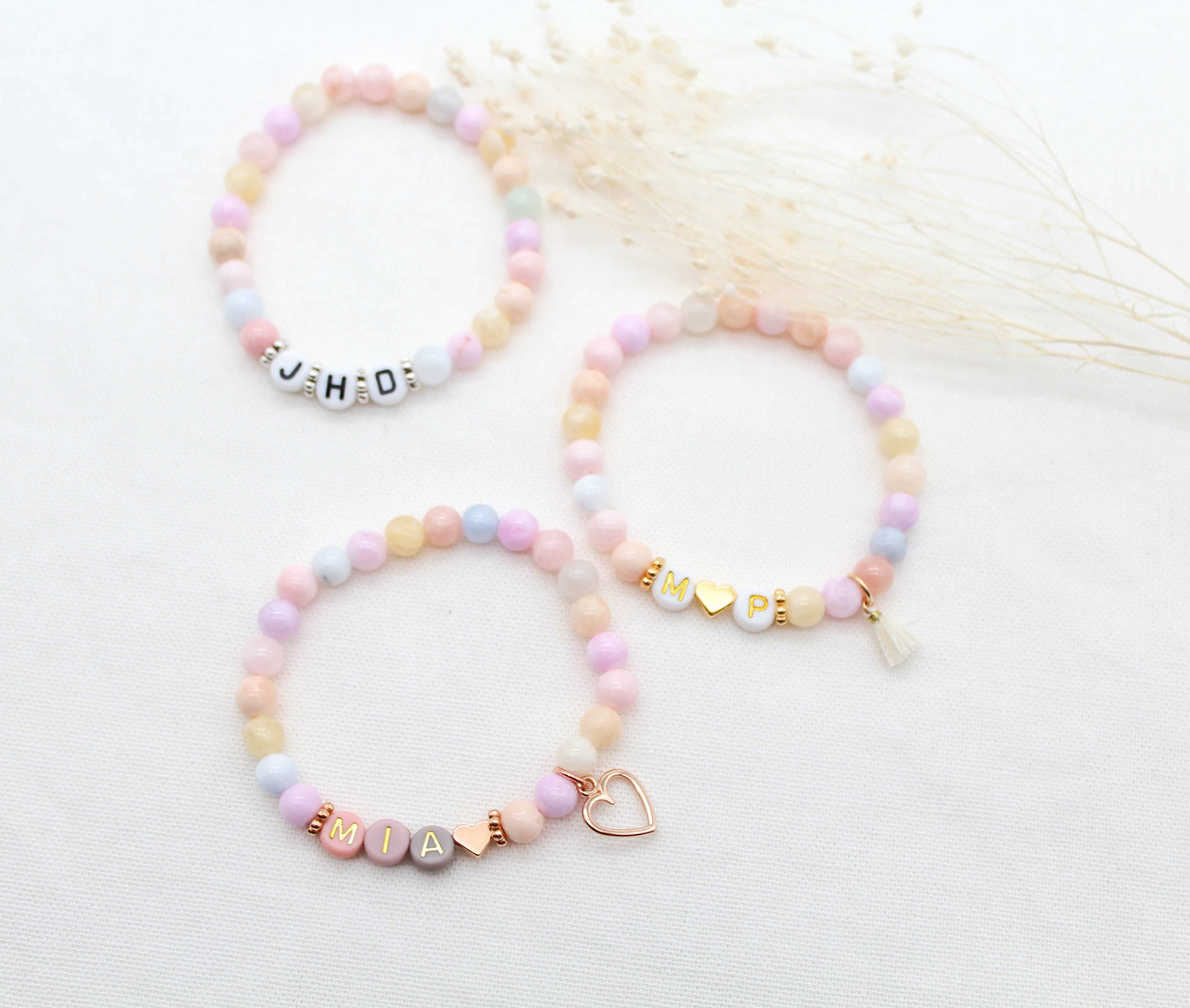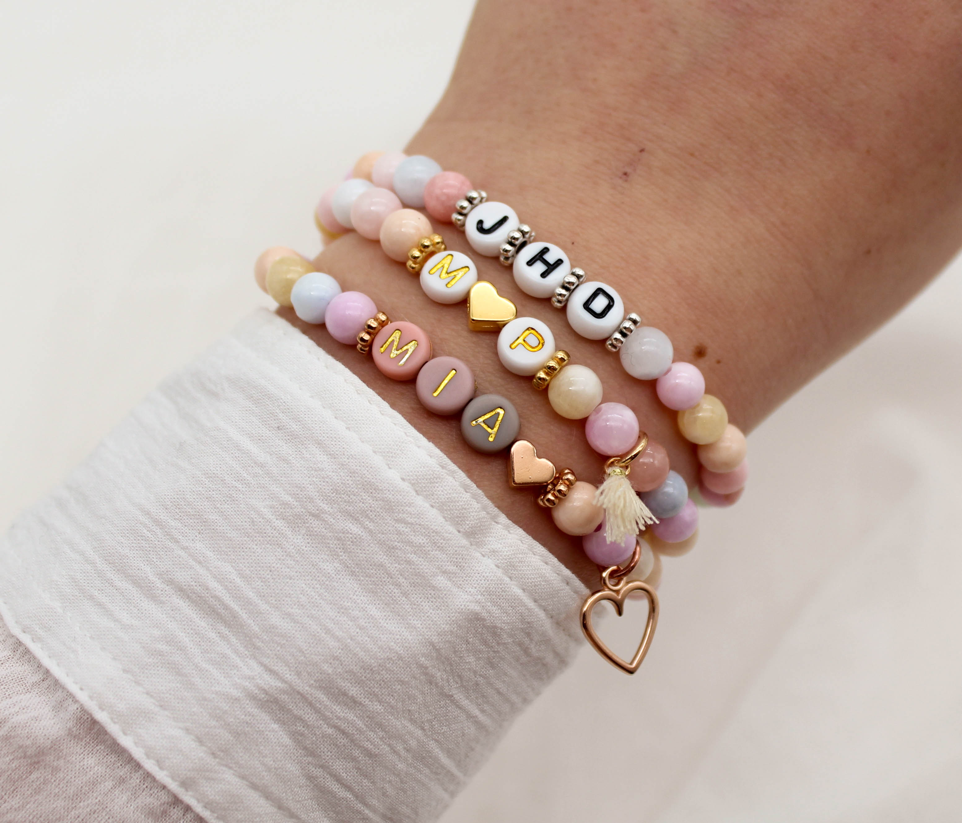 Name Initial Armband bunt Naturstein Perlen personalisiert